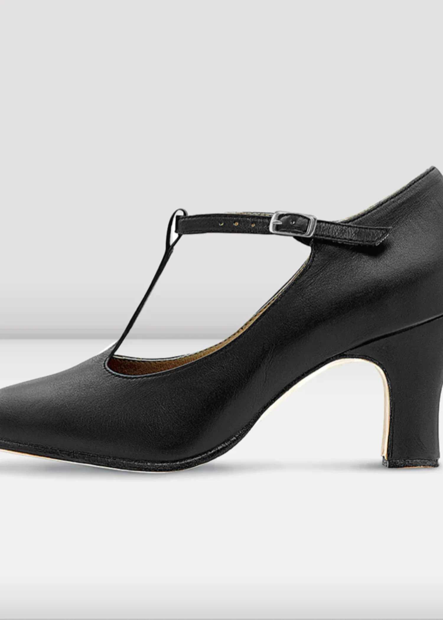 A leather T-bar chorus shoe with a 3 inch heel and a full leather sole, for supreme durability and comfort.