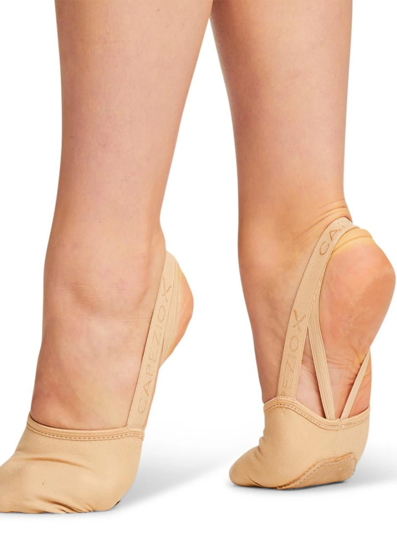 - One sided plush primary elastic with Capezio logo and secondary silicone lined elastic for secure fit around heel