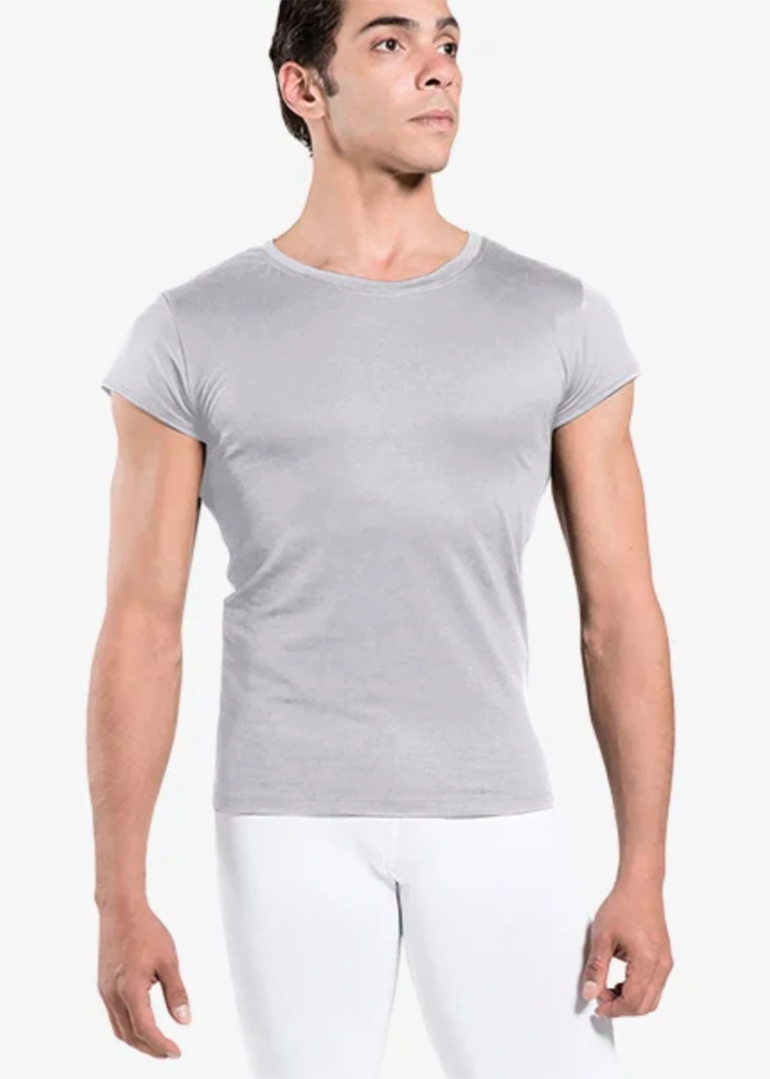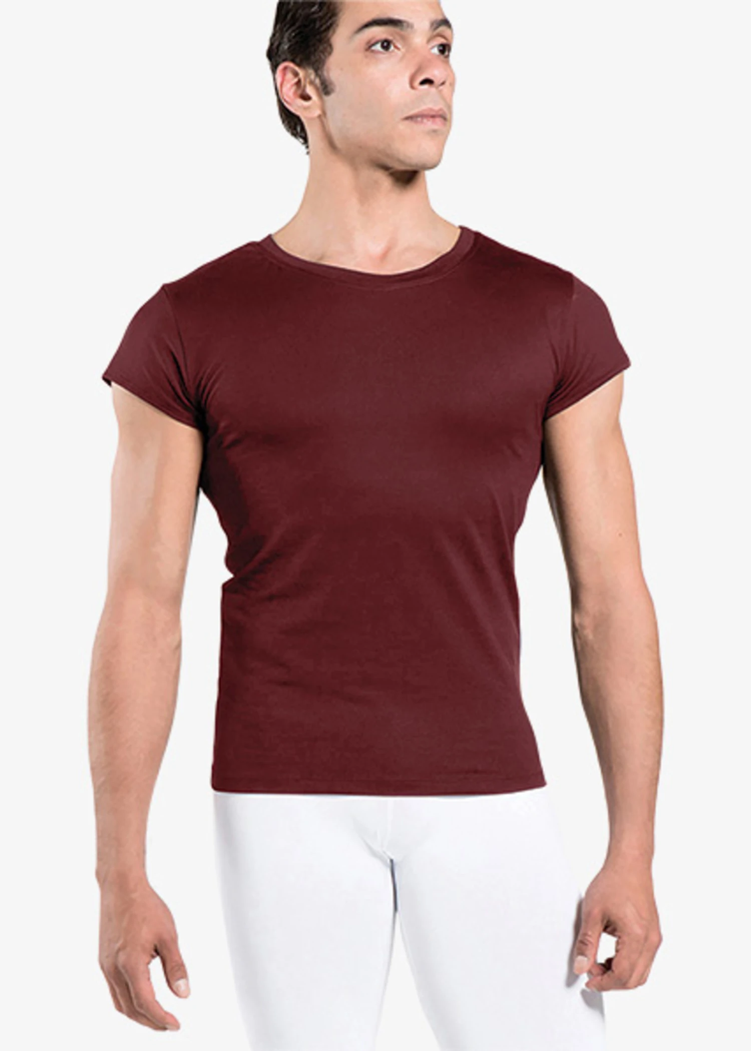 An ideal uniform staple, this crewneck cap sleeve men’s microfiber shirt is anything but basic.